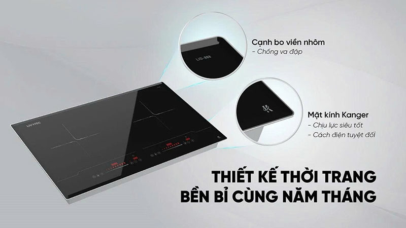 Bếp từ đôi Livotec LID-888 sử dụng mặt kính Eduraz Ceramic cao cấp – loại kính chuyên dụng chịu nhiệt lên đến 800°C và chống va đập tốt.