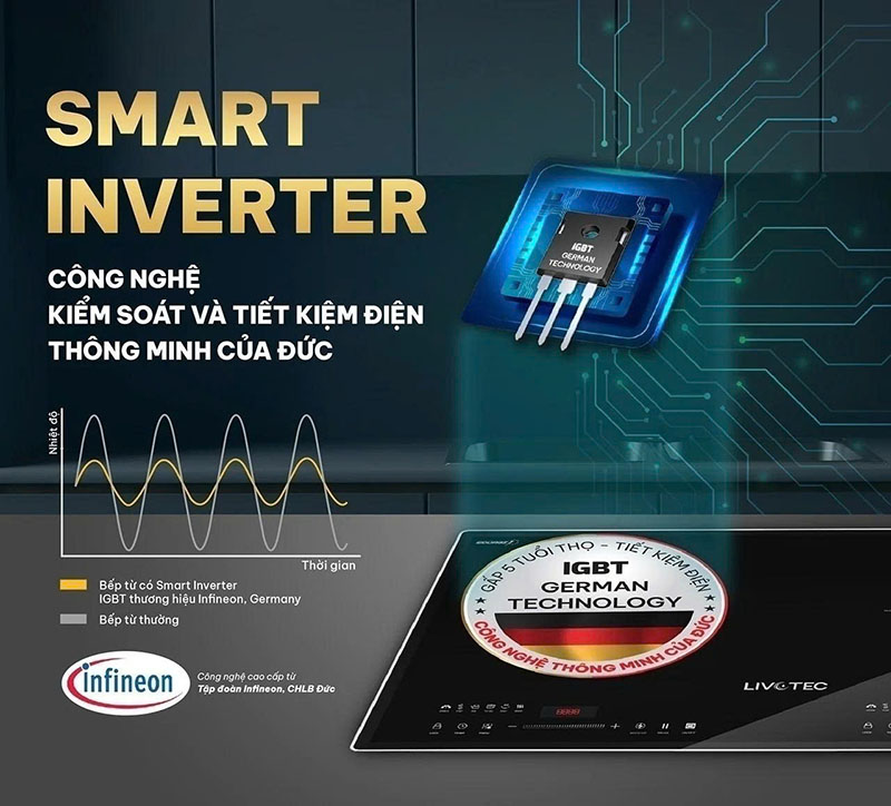 ♦ Bếp từ đôi Livotec E-smart LID-980M trang bị Smart Inverter chuẩn Đức