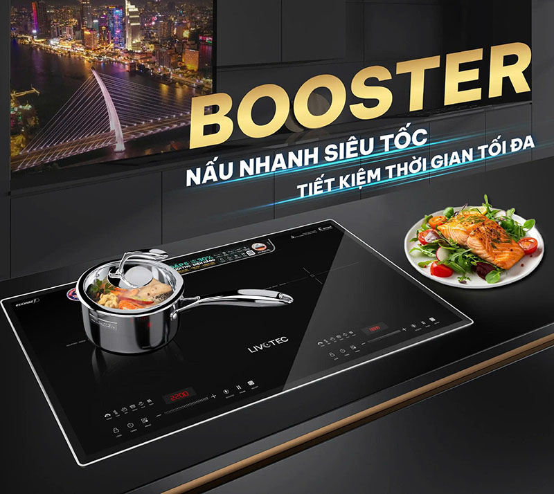 Chức năng Booster cho phép bếp hoạt động ở công suất tối đa trong 5 phút, lý tưởng cho các món ăn cần làm chín nhanh như lẩu, xào, chiên… giúp tiết kiệm thời gian nhưng vẫn đảm bảo chất lượng món ăn.