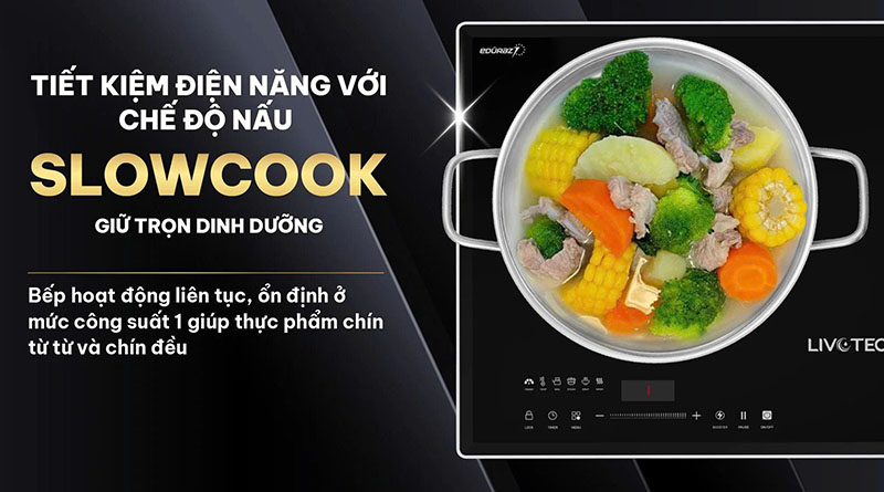 Với chức năng nấu liu riu Slowcook, bếp giữ nhiệt ổn định ở mức thấp, phù hợp với món hầm, ninh nhừ, giúp giữ lại trọn vẹn dinh dưỡng và mùi vị tự nhiên của thực phẩm.