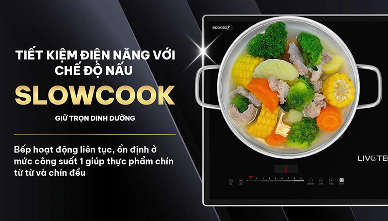 Chế độ Slowcook giúp duy trì nhiệt độ ổn định ở mức thấp trong thời gian dài, làm chín thực phẩm từ từ, giữ trọn hương vị và dinh dưỡng – phù hợp với các món kho, hầm, tiềm.