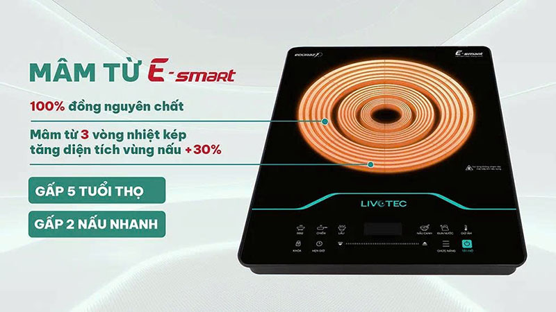 Sử dụng mâm từ E-smart 100% đồng nguyên chất kết hợp 3 vòng nhiệt kép giúp: