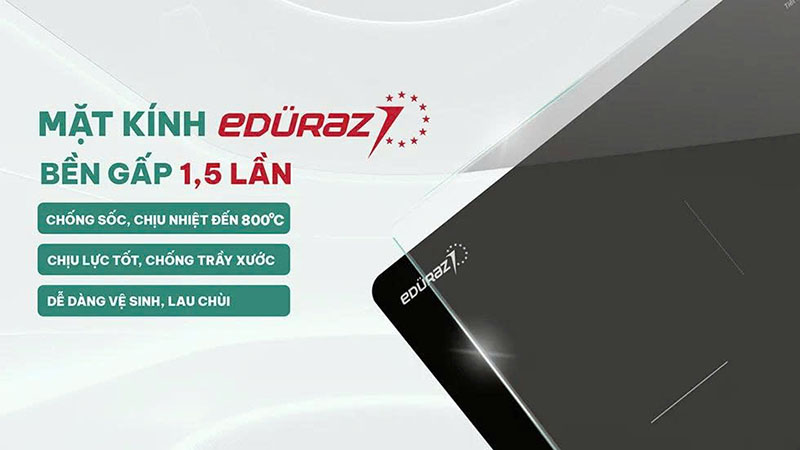 ♦ Mặt kính Eduraz chịu nhiệt 800°C, chống trầy, dễ lau chùi
