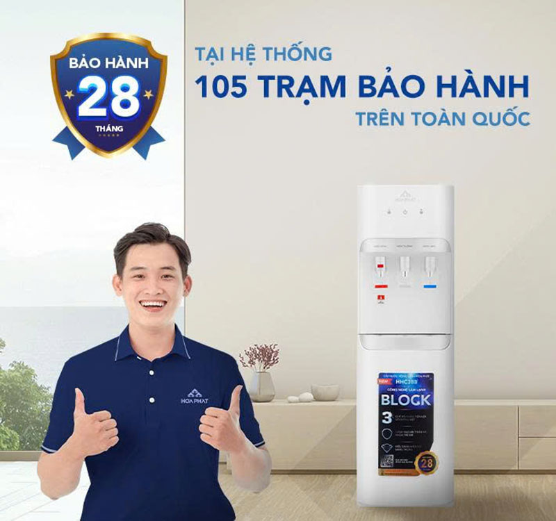 Hòa Phát cung cấp chế độ bảo hành chính hãng lên đến 28 tháng – thời gian dài nhất trong phân khúc cây nước nóng lạnh gia đình, mang lại sự an tâm tuyệt đối cho người sử dụng.