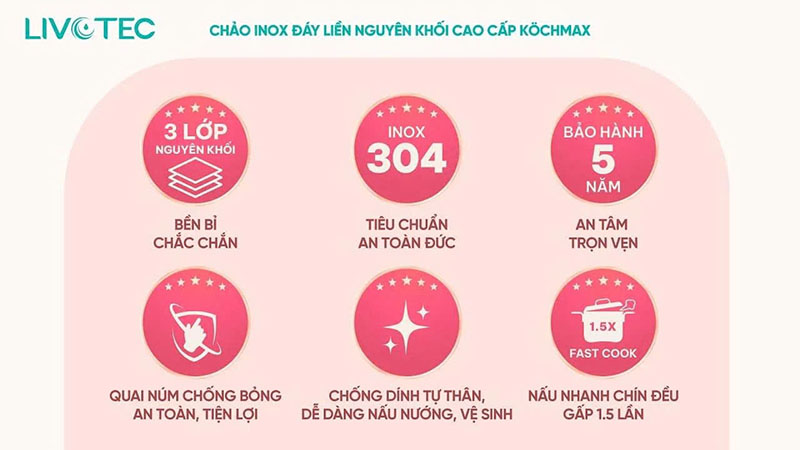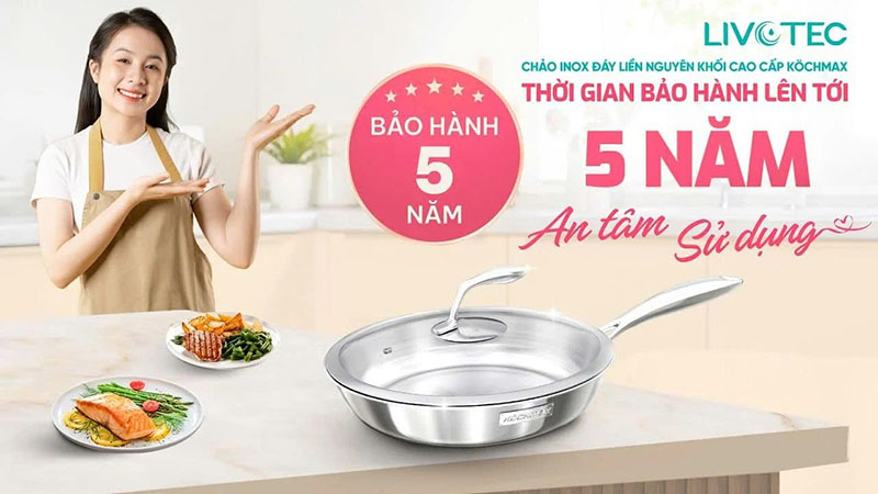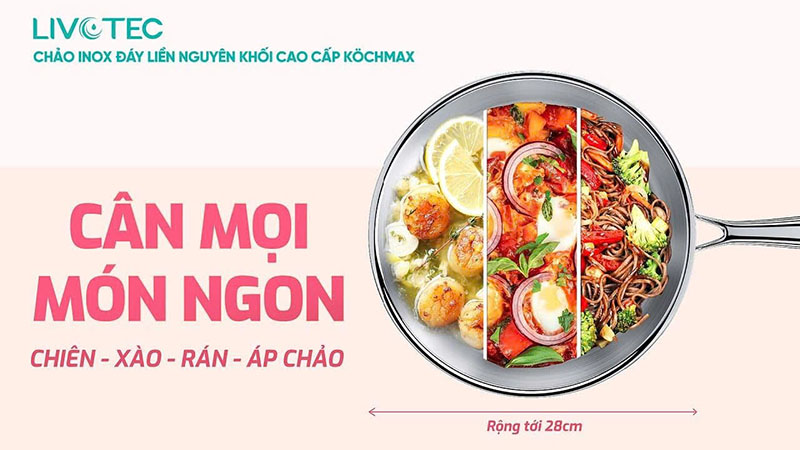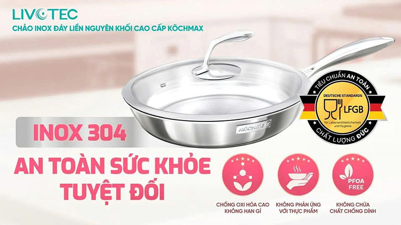 CHẢO INOX CAO CẤP KOCHMAX KMP-28 – BỀN GẤP 4 LẦN, TRUYỀN NHIỆT NHANH 99.9%, CHUẨN AN TOÀN ĐỨC
