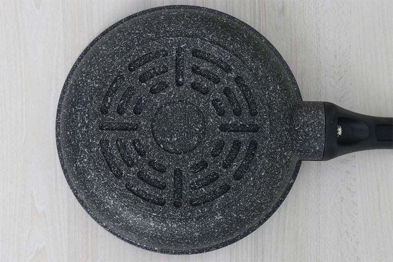 Thân chảo làm bằng hợp kim nhôm tráng đá hoa cương giúp tản nhiệt đều. Đáy chảo được thiết kế chống trượt an toàn khi sử dụng.