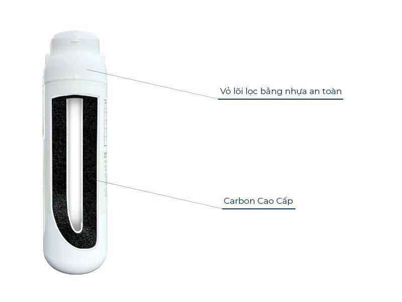 Sau khi nước đã qua màng RO, lõi Post Carbon tiếp nhận nhiệm vụ lọc cuối: