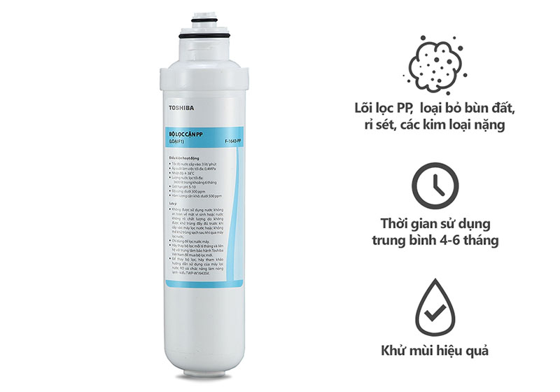 Để đảm bảo nguồn nước sinh hoạt an toàn, việc lựa chọn lõi lọc nước chất lượng cao là vô cùng quan trọng. Lõi lọc nước Toshiba số 1 F-1643-PP là sản phẩm đến từ thương hiệu nổi tiếng Nhật Bản, được thiết kế nhỏ gọn, dễ lắp đặt và có khả năng loại bỏ tạp chất, bùn đất, vi khuẩn, mang đến nguồn nước tinh khiết cho gia đình. Đây chính là lựa chọn lý tưởng để duy trì hiệu suất ổn định cho máy lọc nước Toshiba và nhiều hệ thống lọc khác.