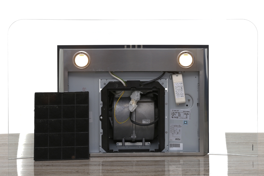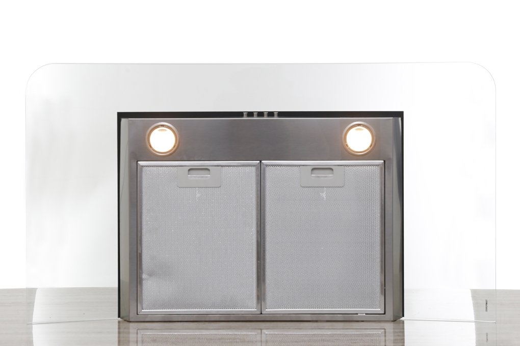 - Thân máy hút mùi bằng thép không gỉ, kính cường lực dày 6 mm sáng đẹp.