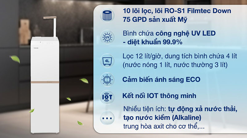 Giải pháp nước sạch toàn diện cho mọi gia đình hiện đại với Toshiba TWP-H2396SVN(W) – tích hợp 2 lõi RO kép, 11 bước lọc tối ưu, công nghệ UV LED diệt khuẩn, cùng khả năng kết nối thông minh IoT, mang đến nguồn nước giàu khoáng, an toàn, tiện nghi và tiết kiệm.