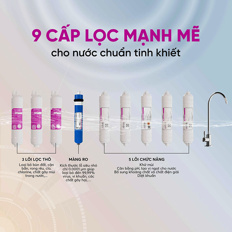 HỆ LỌC 9 CẤP MẠNH MẼ – TẠO NGUỒN NƯỚC SẠCH TINH KHIẾT
