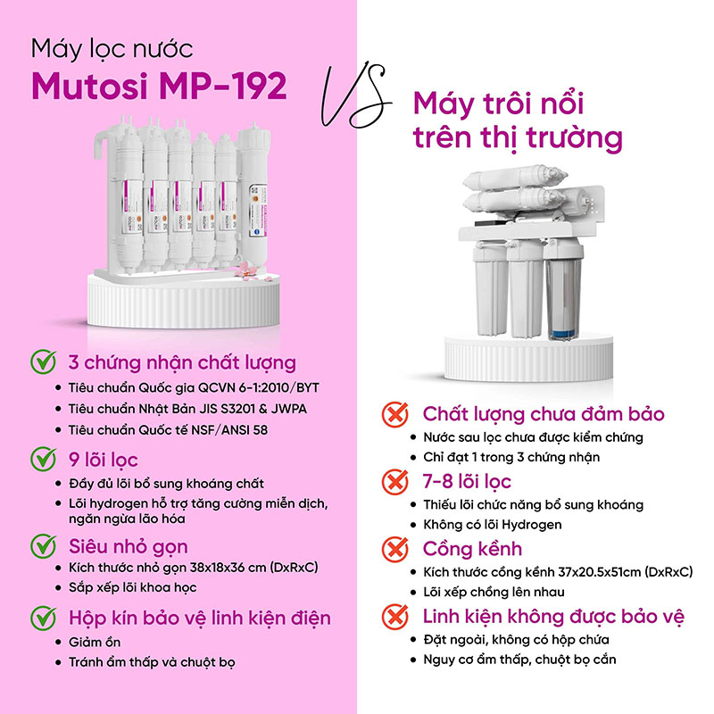 | Tiêu chí | Mutosi MP-192 | Máy trôi nổi thị trường |