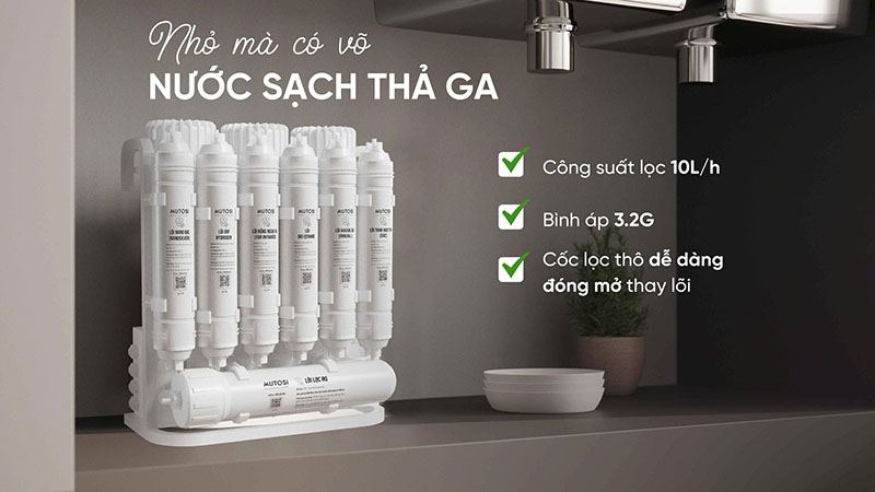 ♦ Máy lọc nước để gầm 10 lõi Mutosi MP-U66 nhỏ gọn, tiện dụng, dễ lắp đặt