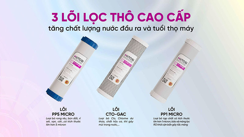 – Lõi PP 1 micron: Bảo vệ màng RO bằng cách lọc tạp chất nhỏ tới 1 micron.