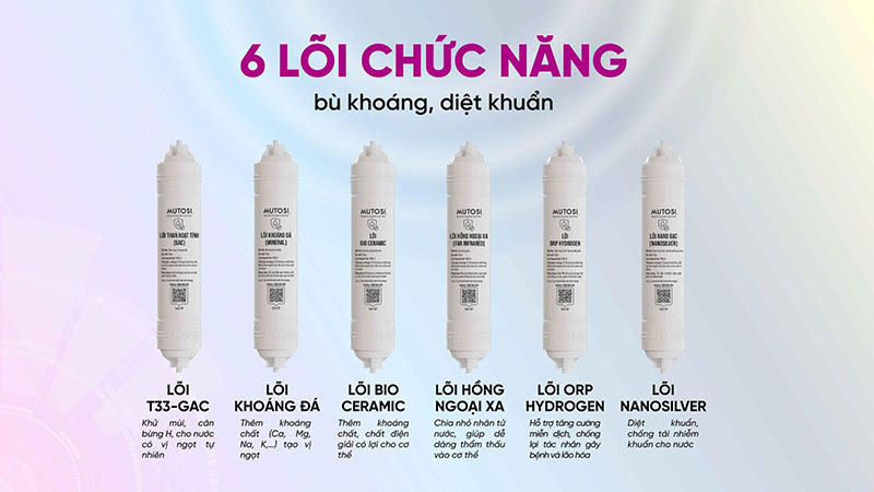 ♦ Hệ thống 10 lõi lọc mạnh mẽ: lọc sạch – bù khoáng – kháng khuẩn – ổn định pH