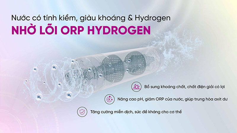 – ORP Hydrogen: Hỗ trợ giảm ORP, tăng chỉ số pH, ngăn lão hóa.