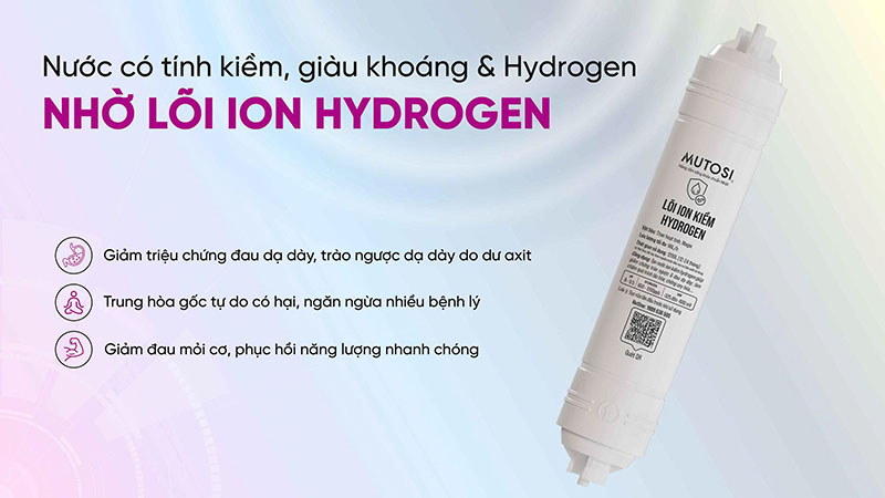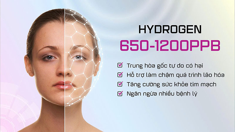 – Nước ion kiềm hydrogen: Giàu khoáng, tăng pH (8.0–9.5), Hydrogen 650–1200 ppb, ORP -325 đến -600mV, hỗ trợ trung hòa axit dư, loại bỏ gốc tự do và tăng đề kháng.