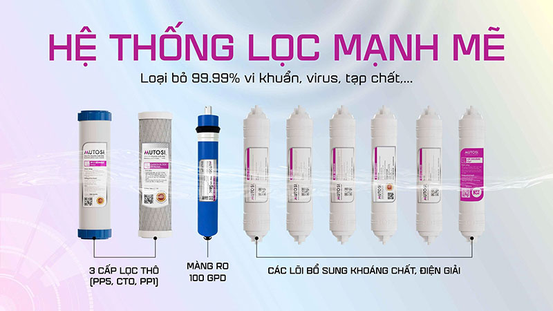 | Hệ thống lõi lọc | 9 lõi – 10 cấp lọc |