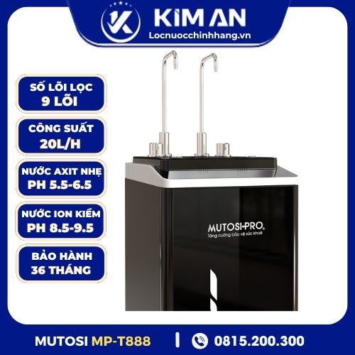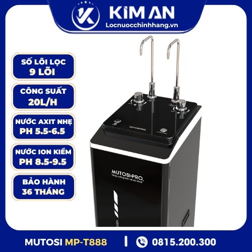 Máy lọc nước điện giải ion kiềm Hydrogen Mutosi MP-T888 là lựa chọn tối ưu cho những gia đình đang tìm kiếm giải pháp tạo nước sạch, giàu Hydrogen và đa chức năng với mức chi phí hợp lý. Sở hữu hệ thống lọc RO đạt chuẩn quốc tế, công nghệ điện phân cao cấp từ Hàn Quốc cùng thiết kế sang trọng – sản phẩm đáp ứng đầy đủ các tiêu chí về sức khỏe, hiệu suất và độ bền.