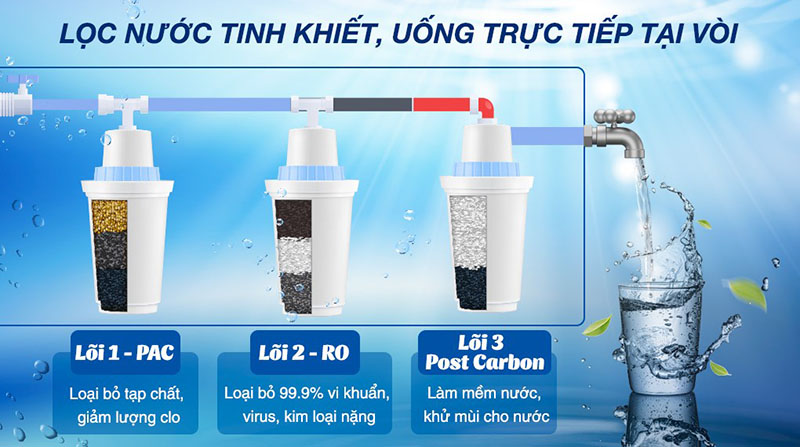 | Số lõi lọc | 3 lõi: PAC – RO – Post Carbon |