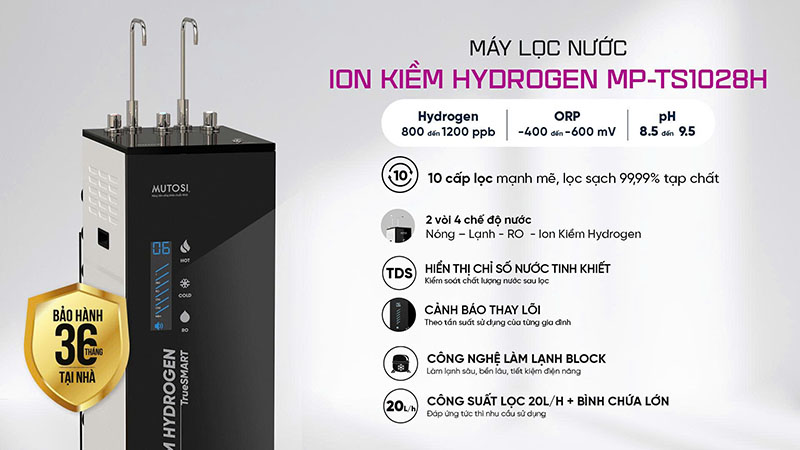 Mutosi MP-TS1028H là lựa chọn lý tưởng cho gia đình hiện đại với nhu cầu nước sạch đạt chuẩn và mong muốn cải thiện sức khỏe lâu dài. Máy sở hữu 10 lõi lọc mạnh mẽ, tạo nước ion kiềm hydrogen giàu vi khoáng và chống oxy hóa. Bên cạnh đó, thiết kế nhỏ gọn, công nghệ làm lạnh block và hiển thị TDS giúp bạn sử dụng tiện lợi và kiểm soát chất lượng nước dễ dàng.