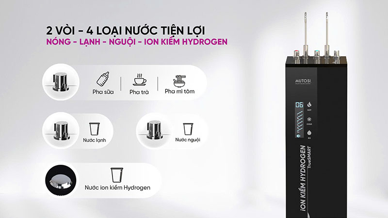 | Số loại nước | 4 loại: Nóng – Lạnh – RO – Ion Kiềm Hydrogen |