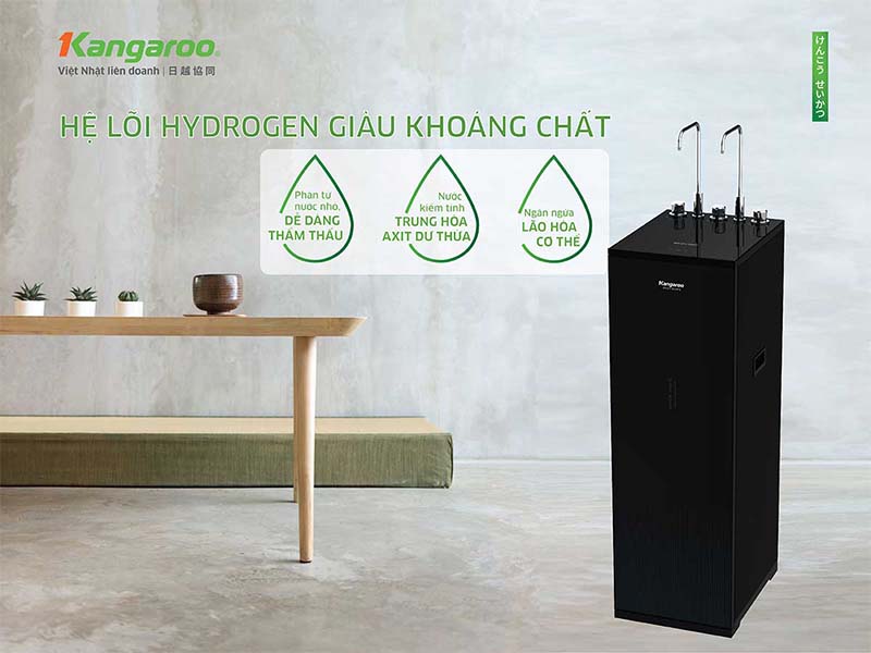 Điểm nổi bật nhất của KG10A15 là khả năng tạo ra nước Hydrogen – một công nghệ độc quyền từ Kangaroo tại Việt Nam. Nước Hydrogen được các chuyên gia đánh giá là "nước uống thế hệ mới" nhờ đặc tính: