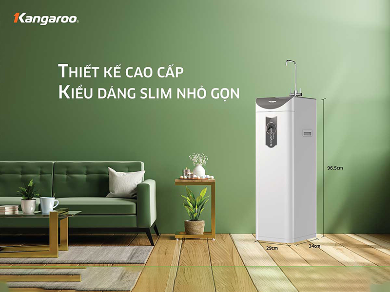 Kangaroo KG100HD2 mang kiểu dáng SLIM hiện đại, nhỏ gọn hơn nhiều so với các dòng máy truyền thống. Máy có cửa đóng mở dạng cánh quay, dễ quan sát lõi và thao tác khi cần thay thế. Thiết kế này đặc biệt phù hợp với các căn hộ nhỏ, văn phòng, nhà bếp hiện đại – nơi không gian sử dụng luôn cần được tối ưu hóa.