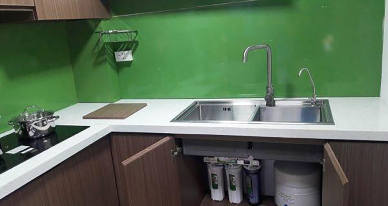 Máy lọc nước Kangaroo KG104A-VTU có thể được lắp dưới chậu rửa với model không tủ để tiết kiệm không gian và chi phí.