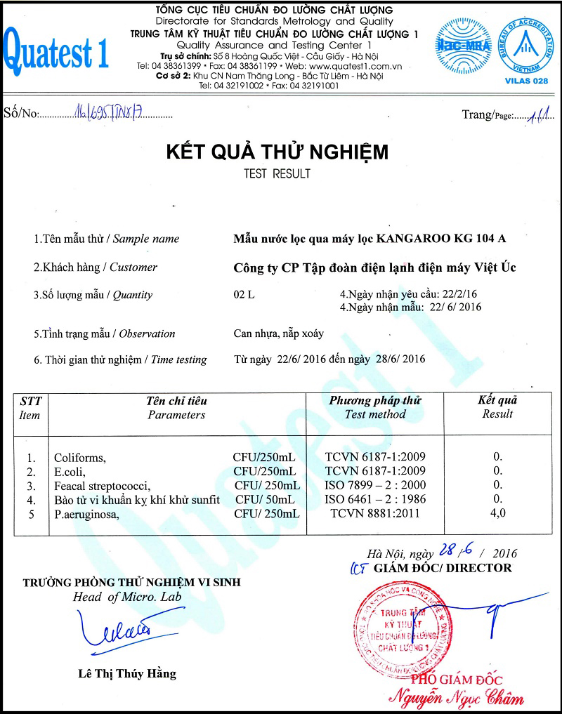 Nguồn nước sau lọc đạt chuẩn QCVN 6-1:2010/BYT, an toàn uống trực tiếp. Ngoài việc loại bỏ vi khuẩn, kim loại nặng, máy còn bổ sung khoáng chất và kiềm hóa nước, hỗ trợ sức khỏe toàn diện – nhất là hệ tiêu hóa, huyết áp và làm chậm quá trình lão hóa.