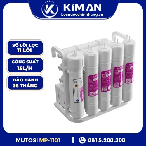 Mutosi MP-1101 là dòng máy lọc nước không tủ sở hữu thiết kế nhỏ gọn, tiết kiệm không gian nhưng vẫn tích hợp công nghệ lọc hiện đại và hiệu suất mạnh mẽ. Với 11 cấp lọc chuyên sâu, công nghệ RO Slitec độc quyền và khả năng tạo nước ion kiềm giàu Hydrogen, model này là lựa chọn lý tưởng cho các gia đình đang tìm kiếm giải pháp nước sạch toàn diện.
