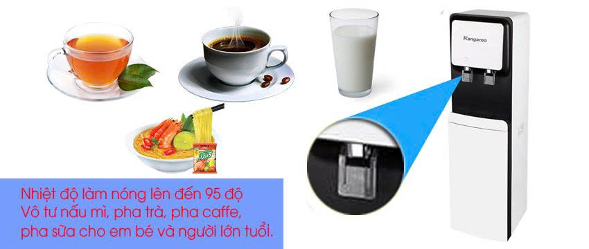 - Nước nóng 85–90°C: sẵn sàng pha trà, cà phê, mì