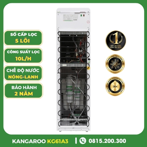 Máy lọc nước Kangaroo KG61A3 là giải pháp tối ưu cho gia đình và văn phòng với khả năng cung cấp nước uống tinh khiết cùng hai chế độ nóng – lạnh tiện dụng. Thiết kế nhỏ gọn, hiện đại kết hợp công nghệ lọc RO và các tính năng tự động thông minh giúp sản phẩm ghi điểm tuyệt đối trong mắt người tiêu dùng Việt.