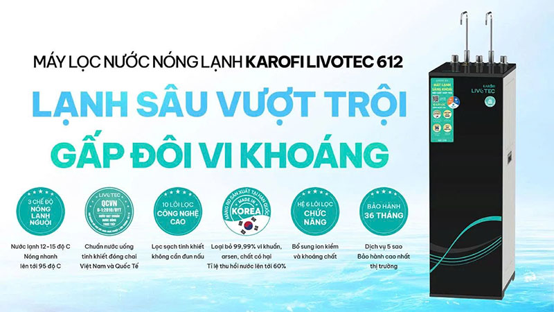 MÁY LỌC NƯỚC NÓNG LẠNH LIVOTEC 612 – LẠNH SÂU VƯỢT TRỘI, GẤP ĐÔI VI KHOÁNG, CHUẨN NƯỚC TINH KHIẾT
