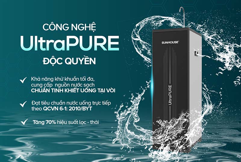 Công nghệ UltraPURE là công nghệ độc quyền của SUNHOUSE và được ứng dụng trong dòng sản phẩm máy lọc nước thế hệ mới. Nhờ có hệ thống lọc đa tầng bao gồm các cấp lọc thô – lọc tinh – lọc bù khoáng được ứng dụng công nghệ UltraPURE, nước sau lọc luôn sạch vi khuẩn, tạp chất, ion kim loại nặng, amip, asen... và được bổ sung đầy đủ khoáng chất thiết yếu cho cơ thể.
