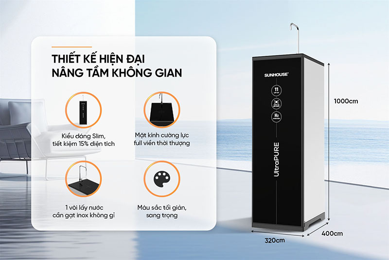 Mang đến sự kết hợp hoàn hảo giữa công nghệ lọc tiên tiến và thiết kế sang trọng, máy lọc nước RO UltraX Sunhouse 11 lõi SHA8801S không chỉ giúp loại bỏ vi khuẩn, kim loại nặng mà còn bổ sung khoáng chất có lợi cho sức khỏe. Với hệ thống 11 lõi lọc thế hệ mới, sản phẩm đáp ứng toàn diện nhu cầu sử dụng nước sạch, tinh khiết và an toàn cho gia đình hiện đại.