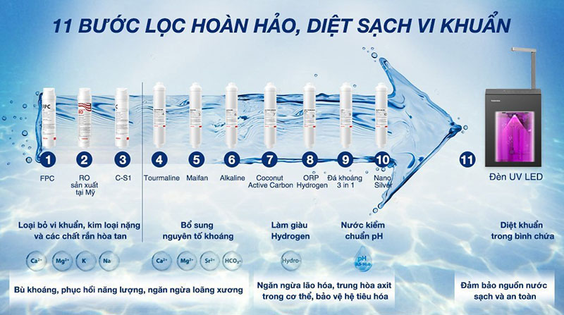♦ Lọc 11 bước chuẩn RO – bổ sung khoáng chất tự nhiên